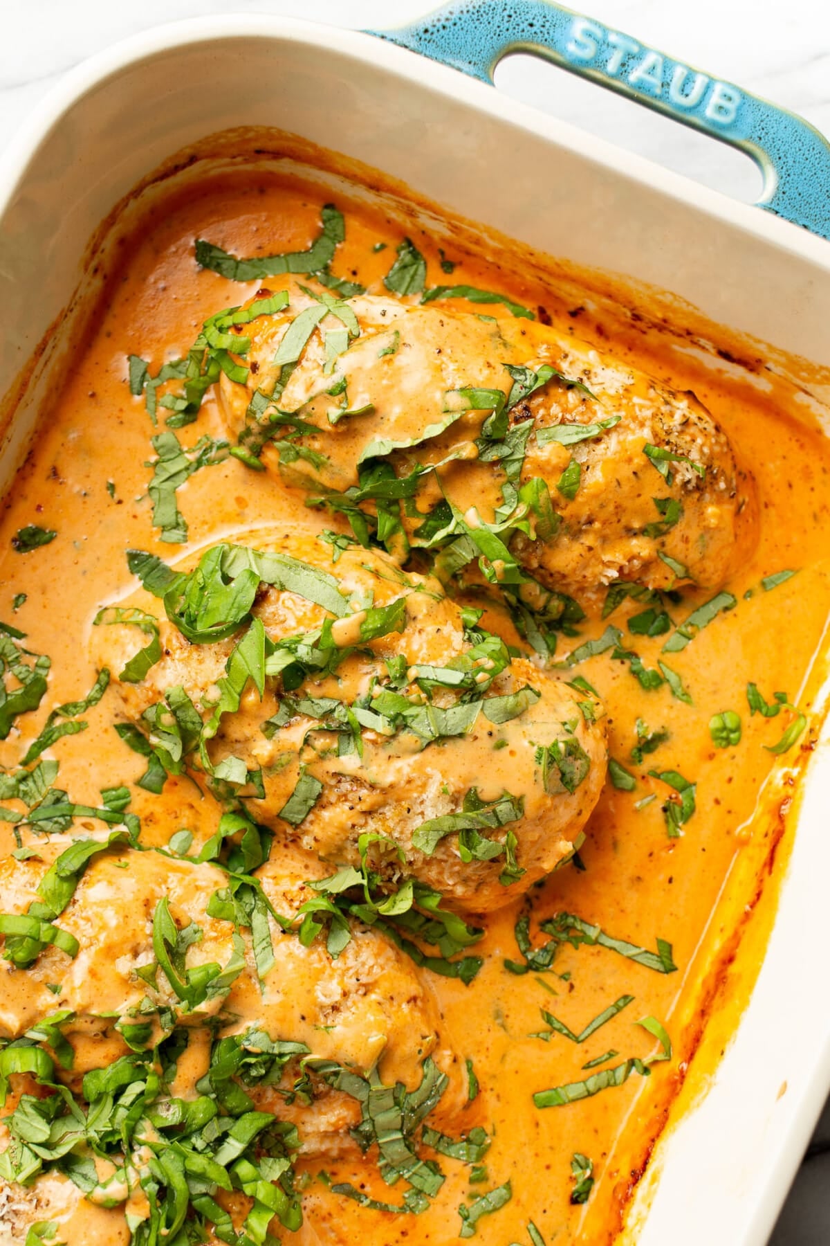 Did you make this baked chicken with a creamy tomato sauce and fresh basil? Leave me a star rating and review below! Or you can tag me in Instagram stories.