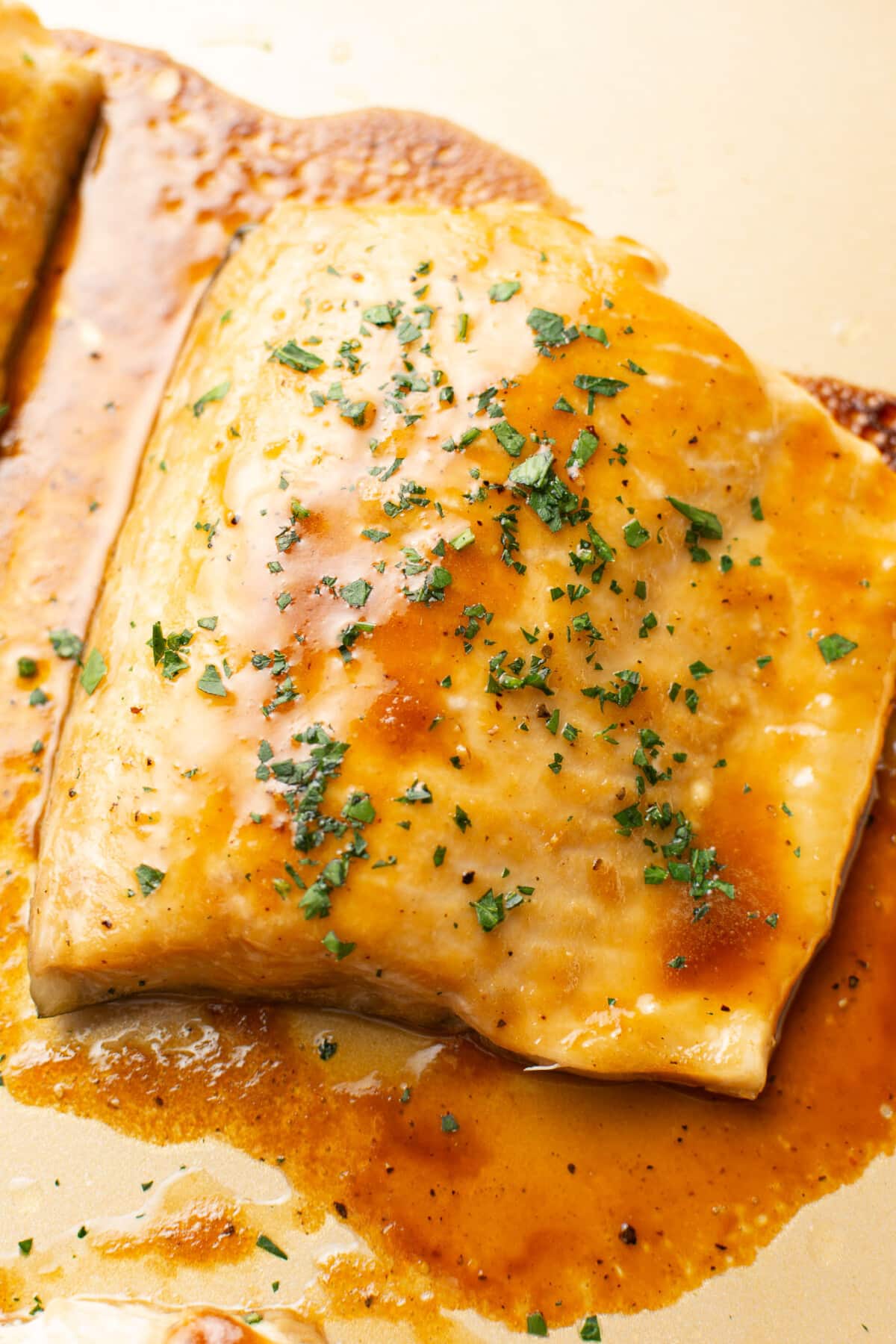 - Sprinkle with the fresh parsley, season with extra salt & pepper if needed. The skin doesn't crisp up in this particular recipe, so I simply slide if off when serving.